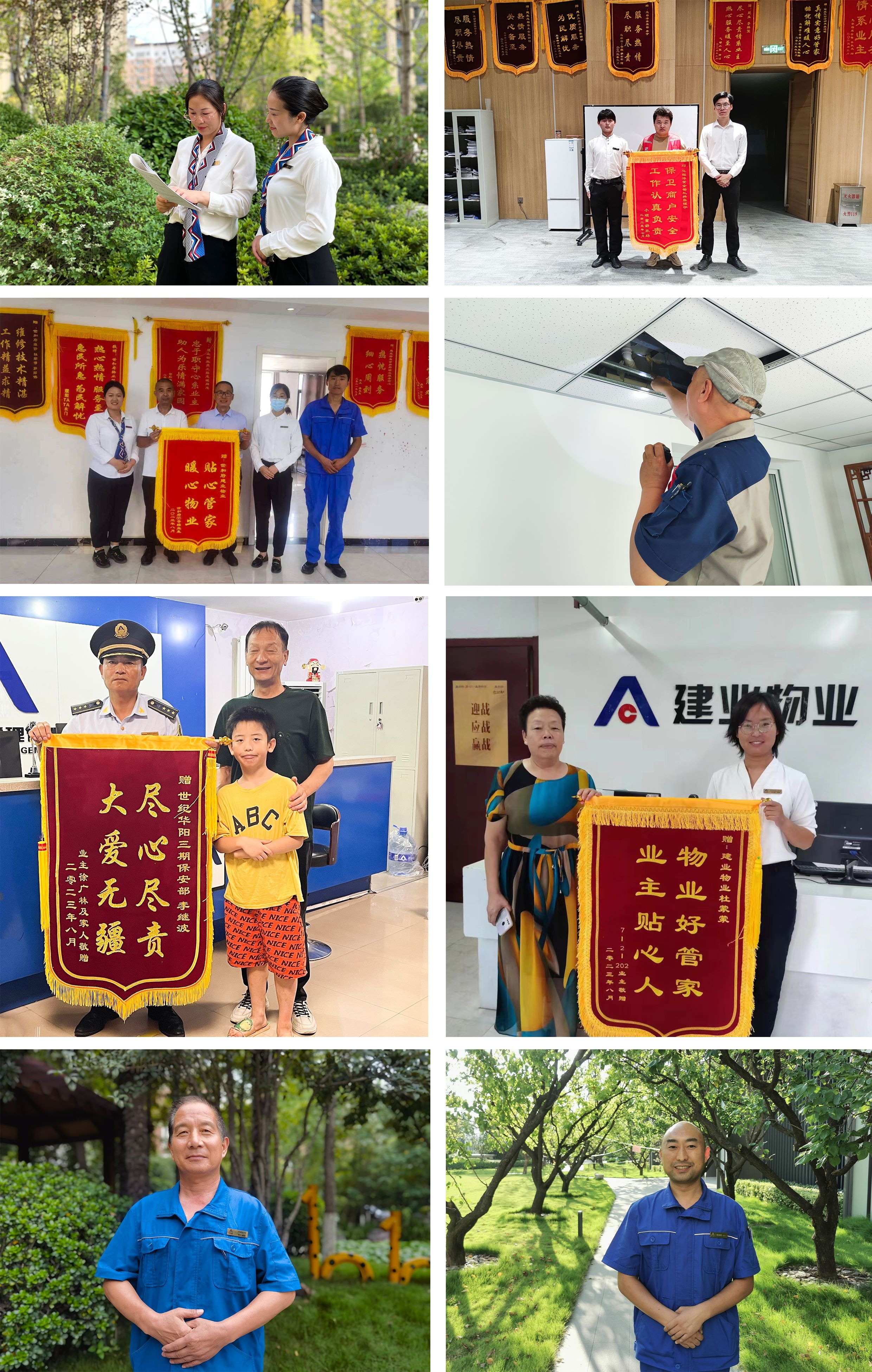 8月份,建業(yè)物業(yè)在管園區(qū)涌現(xiàn)出好人好事951件,其中收到錦旗226面、感謝信94封、其他致電表揚等631次。