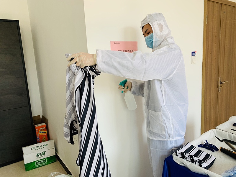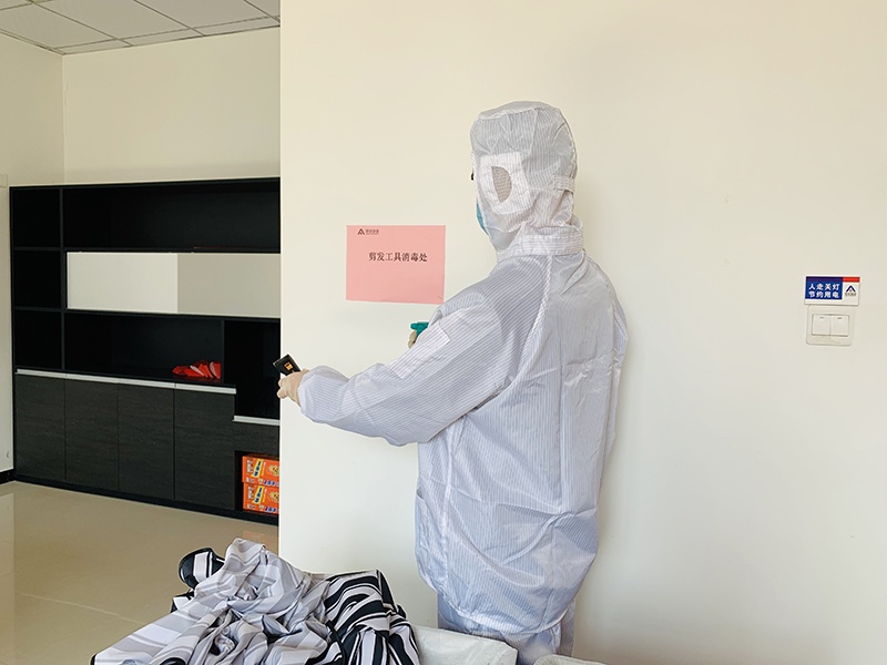 工具消毒。每位業(yè)主在理發(fā)之前,建業(yè)物業(yè)的工作人員都會(huì)對(duì)理發(fā)師和使用工具進(jìn)行消毒,保障參與活動(dòng)人員的安全。