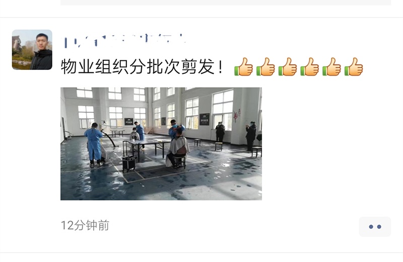 秩序井然。業(yè)主到達(dá)后建業(yè)物業(yè)工作人員會(huì)對(duì)其進(jìn)行登記、測(cè)溫并消毒,完成之后開始理發(fā)。理發(fā)結(jié)束后,建業(yè)物業(yè)組織業(yè)主有序離開,避免人員聚集在活動(dòng)場(chǎng)地,廣大業(yè)主也積極配合,活動(dòng)全程有秩序進(jìn)行。