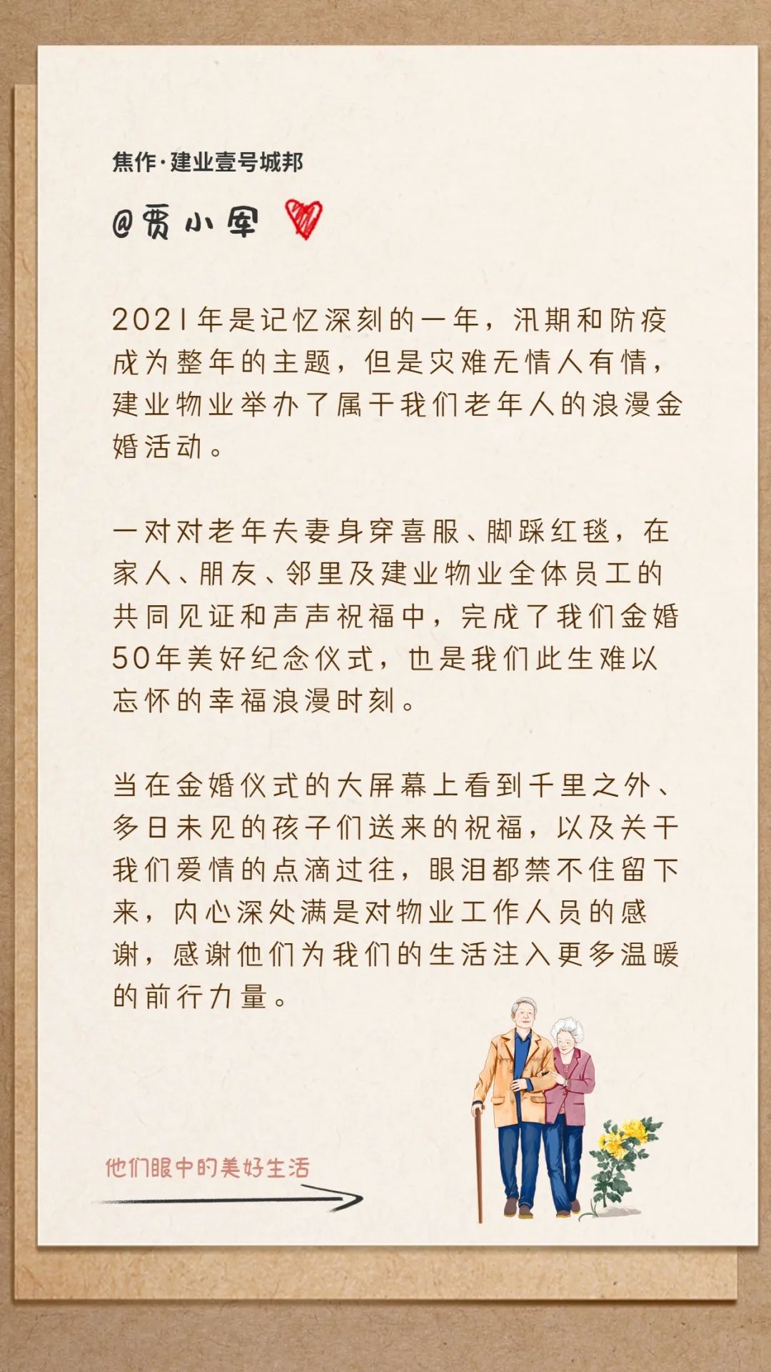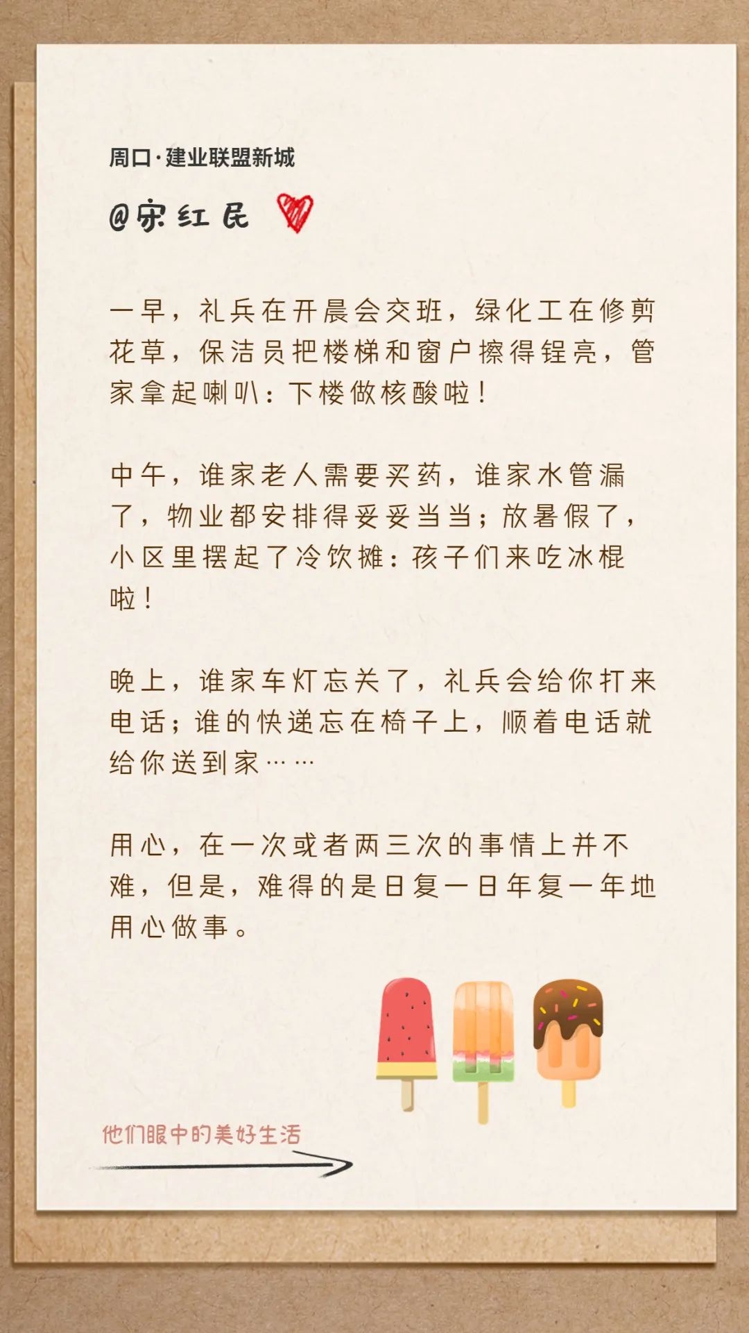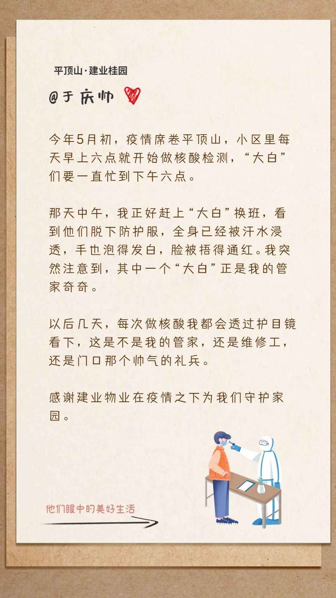 在通往美好生活的道路上,每個(gè)人都在用自己的方式努力著,奮斗著,建業(yè)物業(yè)人也將不斷以守護(hù)者、創(chuàng)造者、陪同者的身份,為業(yè)主的美好生活添磚加瓦、保駕護(hù)航。