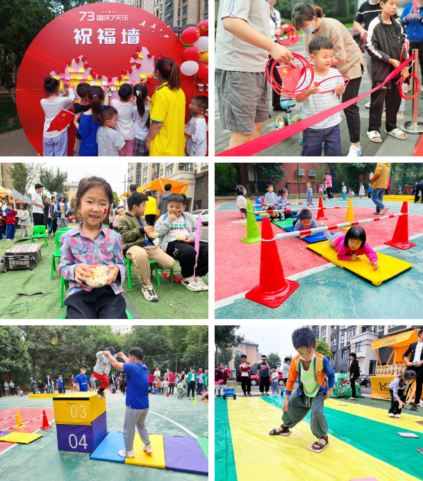 九州同慶,江河歌唱,歡樂從不會缺席每一個節(jié)日。愛國文藝匯演、小英雄故事會、趣味運動會……在歡樂中,我們?yōu)樽鎳赣H慶生。