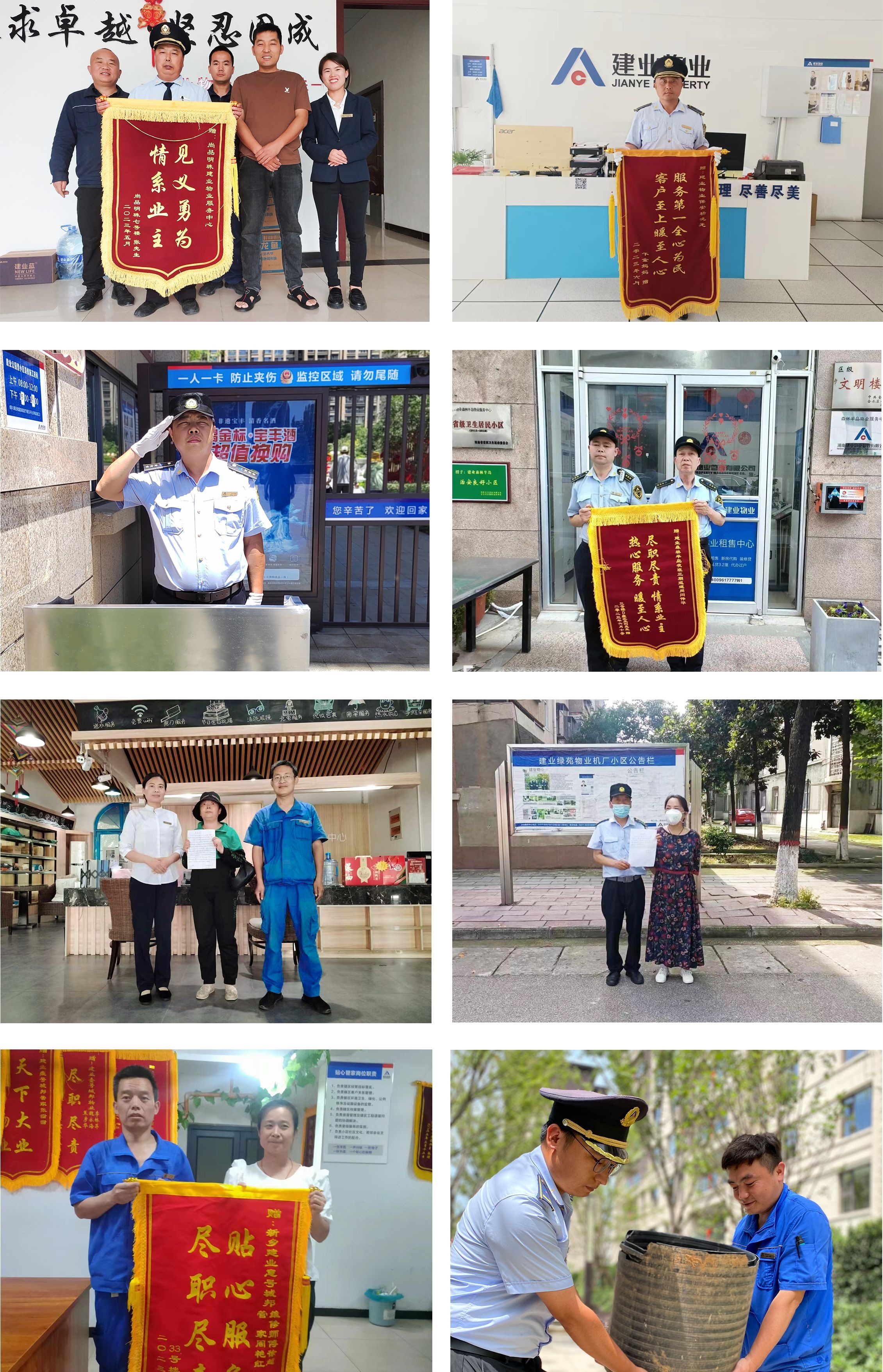 6月份,建業(yè)物業(yè)在管園區(qū)涌現(xiàn)出好人好事854件,其中收到錦旗232面、感謝信90封、其他致電表揚(yáng)等529次。
